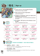 除了 A、B 對話之外,每個情境更額外補充實用會話句,全書共有約 2,000 句會話,讓你用最簡單的英文走遍全世界。特別標示:句中有底線的單字為該情境的補充單字;黃底字為額外補充的生活常用單字。