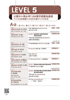 全書單字依照大考中心《108高中英文參考詞彙表》分為6個LEVEL,並且比照美國學生學習程度,可以循序漸進地學習;再輔以燈號標示,絕對適用於大學入學考試、全民英檢GEPT、多益TOEIC、雅思IELTS、托福TOEFL、公務人員考試等各類英文測驗,完全符合各類考生的應考需求。