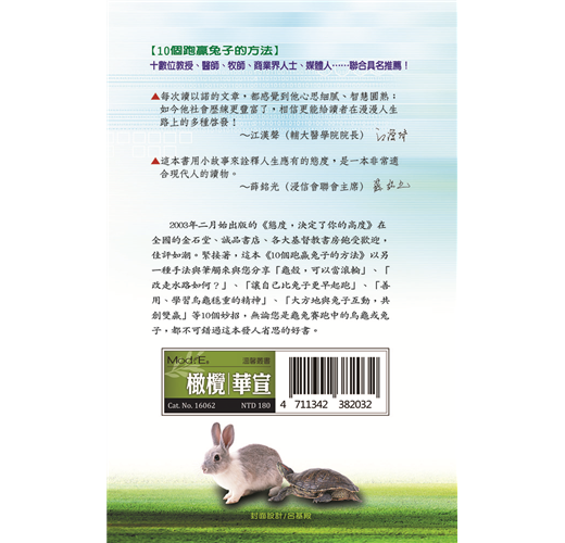 烏龜能跑贏兔子,你相信嗎?作者從生活反省與自我啟發中,深入淺出地分享十個有趣的觀點。讓我們不再受制自己的刻板印象,打破固執的意念來改變自己。
