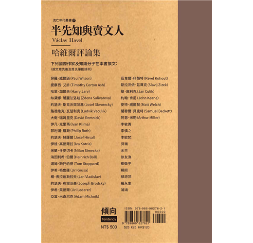 本書收錄三十八位東西方作家、學者和知識分子,近三十年來研究和評論哈維爾的文字。經由「認識哈維爾」、「理解哈維爾」、「解構哈維爾」、「虛擬哈維爾」這四個主題,呈現東西方作家、知識份子和流亡作家對哈維爾迄今一生的政冶作為、思想和文學作品的不同認知和解讀。