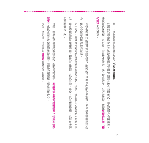 代謝的作用是將從外界攝取進來的物質轉變成對身體有益的形式,提供或儲存在臟器裡。肝臟會代謝醣類、蛋白質、脂質等營養素,要了解脂肪肝、生活習慣病,搞懂醣類的代謝〈糖代謝〉尤其重要。