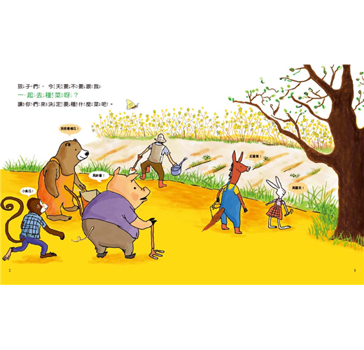 小豬想要馬鈴薯,馬兒喜歡紅蘿蔔,兔子想種高麗菜。