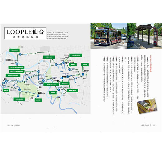 2.精心繪製仙台地下鐵、LOOPLE仙台巴士路線圖、仙台商店街地圖,以及青葉、宮城野&若林、太白、泉區及宮城縣五張區域地圖。