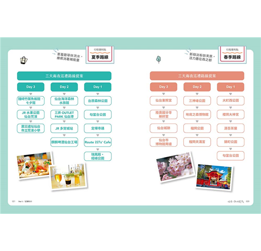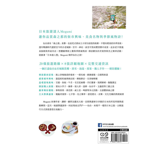 書中提供豐富多元的特色旅遊與區域提案,無論何時出發,不管是哪個族群,都能細品仙台與宮城獨樹一格的風貌!