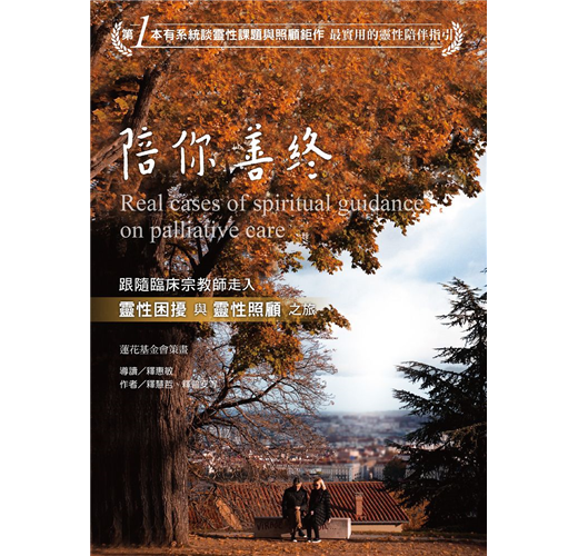《陪你善終》一書詳細刻畫宗教師在照顧病人過程中所看到的靈性困擾及他們所運用的靈性照顧方法。內容相當豐富,定能幫助大家學習如何面對自己及家人所遇到的靈性困擾,是值得人手一冊的好書。