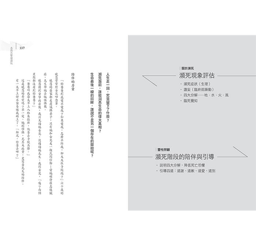 ‧第一本有系統、明確談論末期病人「靈性」、「靈性困擾」與「靈性照顧」之生死書。