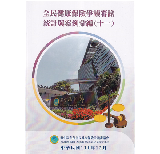 「全民健康保險爭議審議統計與案例彙編(十一)」係選錄109至110年具有代表性及教育性之全民健康保險爭議案例,並就爭議審議資料進行統計分析及說明,編印成爭議審議統計與案例彙編(十一),讓讀者能從中獲知與自身有關健保之權利及義務,也能瞭解2年來全民健康保險爭議趨勢。