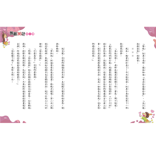 《無敵36計》全3冊,是人氣暢銷書【小四愛作怪】的系列作品。在延續一貫的搞笑風格中,融合了古人36計的智慧結晶,藉由校園師生發生的趣事,充分展現計策的奧妙與魅力,也啟發小讀者隨機應變的能力。