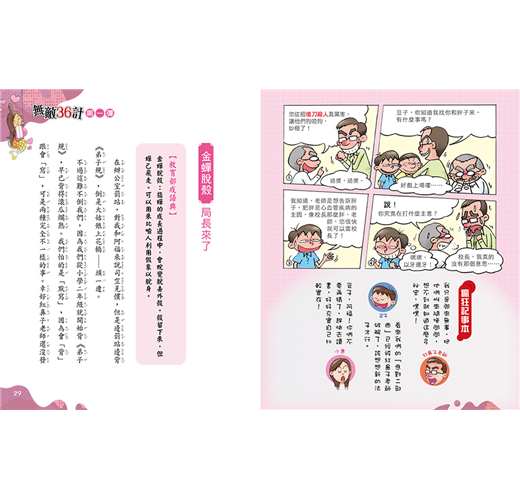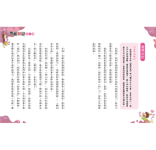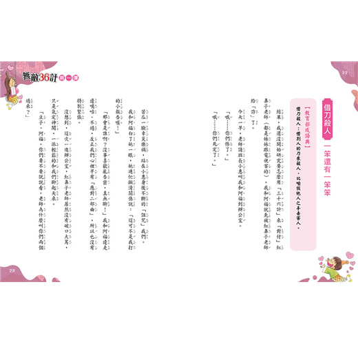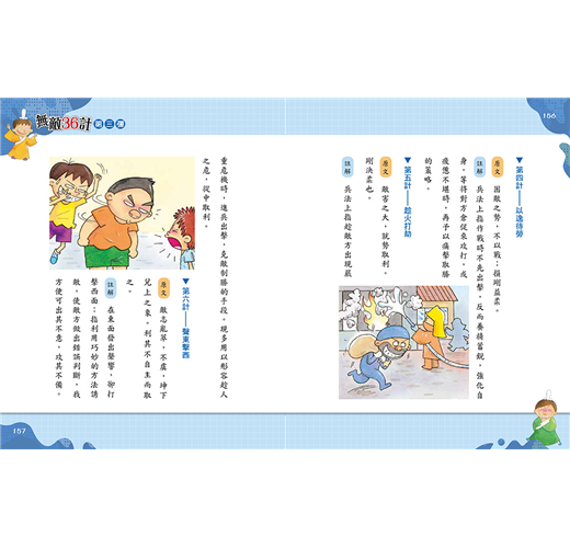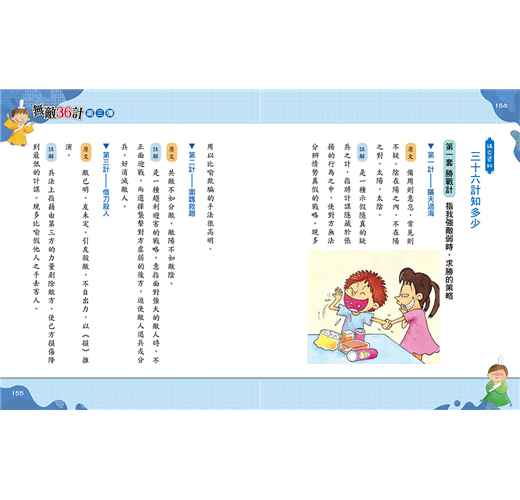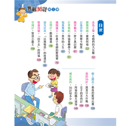書中完整收錄36計當中的全部計策,還增添了「同一事件,如何用不同策略解決」的情境單元,每篇故事更搭配一則爆笑的四格漫畫,歡樂加倍,知識也加倍唷!