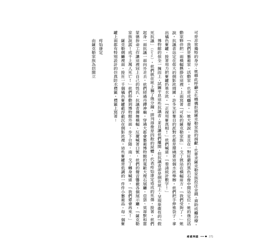 薄文承,畢業於政治大學英國語文學系,目前就讀臺灣大學翻譯碩士學程筆譯組。希望未來能成為在各方面(心靈、時間、金錢等)都擁有充裕自由的專業自由譯者。譯有《疼痛帝國》(第十一章-第二十章)等。譯作賜教:vincent104501050@gmail.com