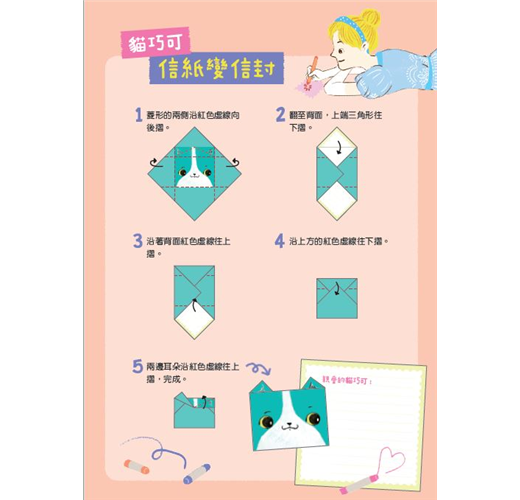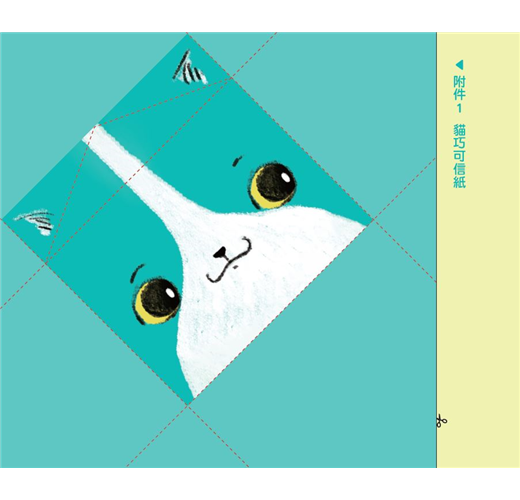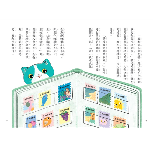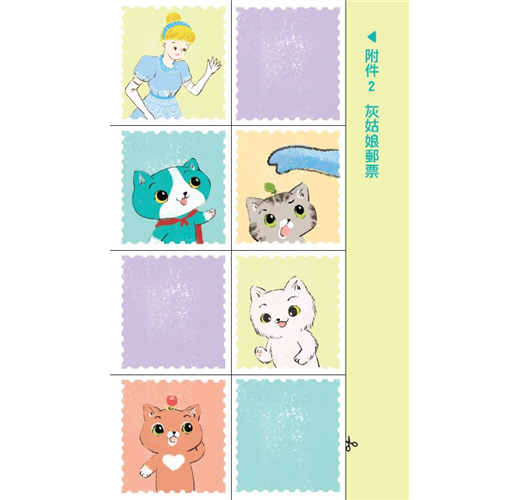 ★書末附有手工達人王淑芬親自設計的貓巧可信紙、灰姑娘郵票,讓小朋友嘗試寫信給貓巧可。