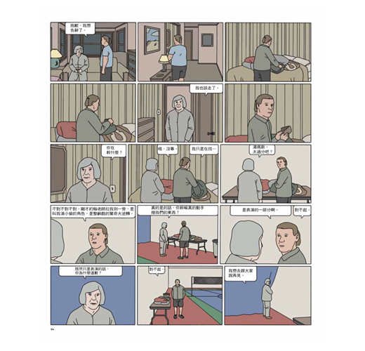 當集體表演變成集體的清醒夢,究竟日常就是一場表演,還是表演是為了逃離日常?靜謐又詭異的畫風讓人宛如看了一場精緻的心理驚悚片。