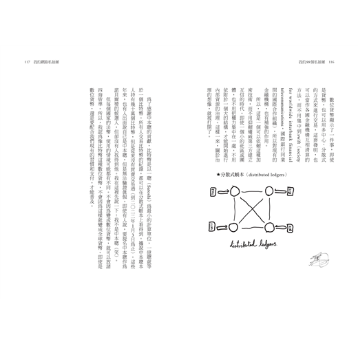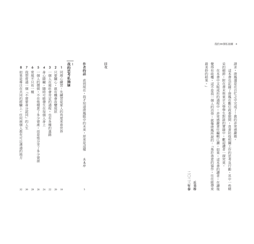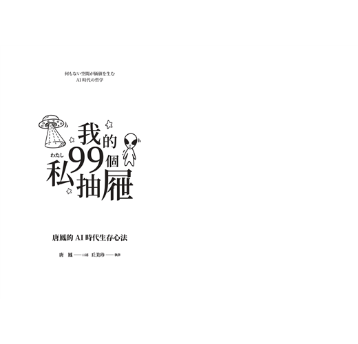 臺灣數位發展部長唐鳳五歲時閱讀老子《道德經》,其中有云:「埏埴以為器,當其無,有器之用。」她自此深知「價值的產生,在於空間」之道,最終遷徙到網路世界中獨自尋思、與人協作:她與素未謀面之人共筆、共創,打造橫向溝通平台,每日結束時都將所知所得發表上線;更以自身體歷為基底,提出在AI時代生存的多元心理準備。全書以唐鳳第一視角敘事,分為「思考/學習/網路/工作/人生」五大篇章:99個唐鳳的「私抽屜」,每拉開一格,都可發現直透人心的知行祕訣,當下轉念受用!