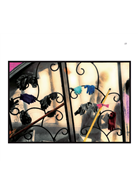 你看!夜色中「那躺平在溜滑梯上的小孩」(第17頁)在公園青綠色日光燈底下睡得這麼安穩,是玩累了嗎?還是負氣離家出走,故意選擇漂盪的夜晚,讓不安的水泥床背棄家裡溫暖舒適的床,是小孩在對抗父母威權下的圖景呢?還是何曰昌渴望逃避家庭的宣言!