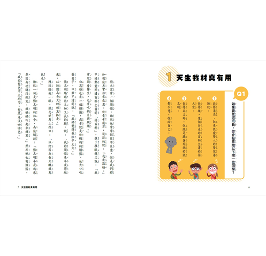 機智生活中沒有標準答案,有的是學生的日常趣事,從這些日常中引導孩子從中去思考、去思辨、去做選擇。另外每一篇後面都有「君偉的機智想法」,用詼諧幽默的方式來呈現亮點引人發想;「一分鐘讀懂xxx」則是我很愛的部分,透過心理學或認知理論的知識,告知孩子遇到許多問題別過於擔心,跟著偉君就對了,小學生活就該機智美好!