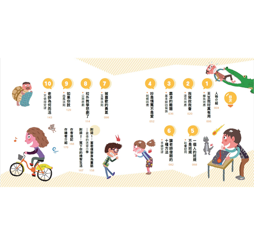 其他像是能力和外表哪個重要、被別人喜歡一定是好的嗎?自律與自由的條件?目睹霸凌,自己該不該挺身而出?和朋友相處的最佳距離?小組討論和別人意見不同該怎麼辦?找工作是興趣重要,還是薪水高重要?這十個大哉問,在孩子熟悉的君偉身上,討論過、思考過,再建構出自己的想法,《君偉的機智生活》,讓孩子和君偉成長,機智有定見吧!