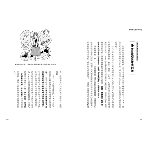 但日本精神科醫師長沼睦雄認為,只要用對方法,HSP族群也可以過得很自在,只要了解自己的敏感反應,接受真實的自己,並隨時轉換環境,以自己的舒適為優先,而非過度體貼、遷就他人,就能阻擋情緒的泥淖,改變心累又無力的現狀。