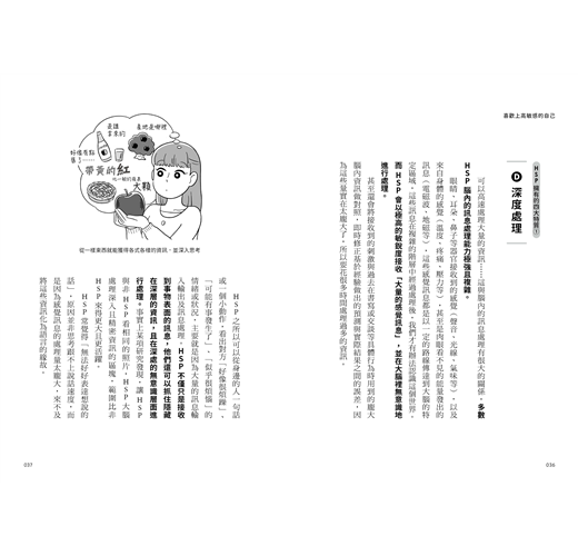 本書融合專業的臨床經驗、療癒的漫畫圖解,詳細分析HSP在日常生活中可能遭逢的各種情緒困境,並提出有效的改善方法,幫助你從焦躁不安的生活中解放出來,找到讓自己快樂的方式。敏感不是弱點,而是你的一部分,世界並未張牙舞爪,只是你還沒掌握與它共處的方式,而變得更好的契機,就從打開這本書開始!
