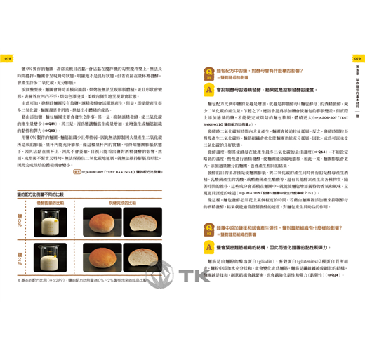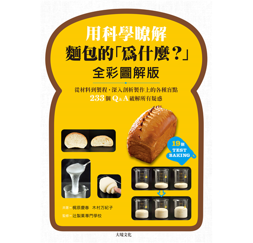 以科學瞭解為什麼?才能融會貫通、牢記不忘藉由從科學瞭解肉眼看不到的麵包內,到底發生什麼事?應該可以更加感受至今沒有覺察到,麵包製作的魅力吧。透過研究麵包的為什麼?並運用在製作上,就可以讓麵包的風味一點一點地不同於以往,重視經由不斷重覆製作中獲得的經驗,加上必備的科學知識,希望大家都能解開對於麵包製程上的所有疑惑,在製作出美味麵包的道路上大步邁進!