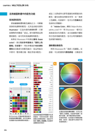配色方面,作者重視實作教學,她會以設計人熟悉的 Photoshop 和 Illustrator 為例,說明如何在軟體中活用色相環或色輪,配出兩色、三色、四色、多色的配色,只要了解原理,不用死背範本就能自己動手選出符合需求的配色。