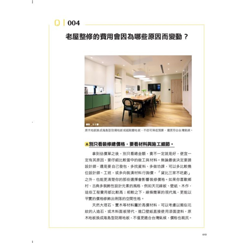 ◆老屋裝潢關鍵Q&A:想要省錢,一定必知的20個問答。