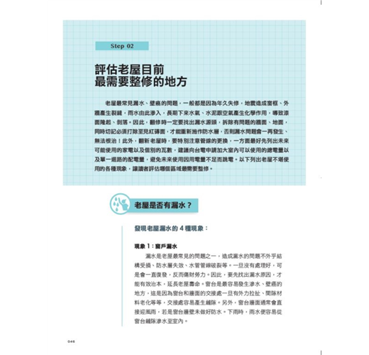 ◆ 找出老屋居住危機:教你判斷老屋體質,揪出隱形的危險因子。
