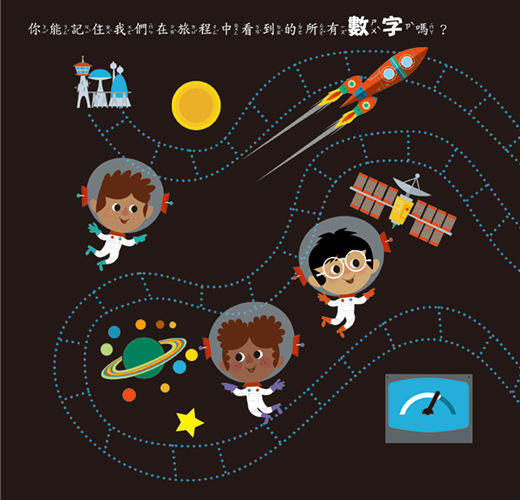 跟著書中的小朋友,一起去宇宙探險學數字。