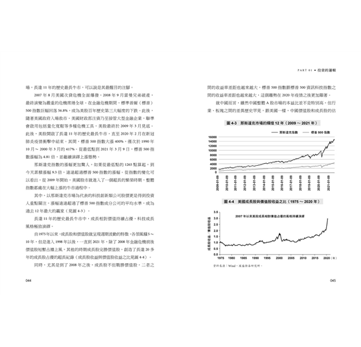 本書在資產配置方法上的論述非常出色,反映出了作者豐富的投資經驗。投資配置大道至簡,只需要在兩個方面進行探索:一方面是高波動的週期資產如何賺取「貝塔」收益;另一方面是高科技成長資產如何賺取「阿爾法」收益。作者認為此二者是一切投資超額收益的來源。透過宏觀論述配合簡單的凱利公式,作者就把高波動週期股的配置說清楚了,而「高科技+商業模式」的論述更契合企業現實。