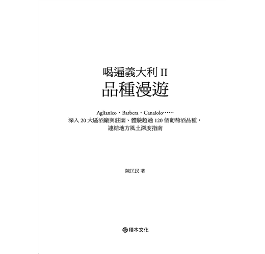 由Barolo村啟程,鍾情於義大利葡萄品種丰采的陳匡民,將領讀者走遍義大利不為人知的鄉野,企圖從與義人的千言萬語與各式風味中追尋品種根源。而這深觸人心的葡萄酒風土考察,將領你用最義式的生活態度,重新思考亞平寧半島上鮮活而多變的「人」與「實」。