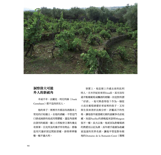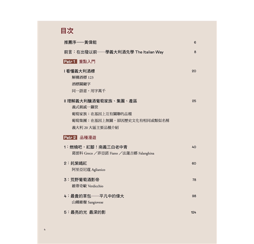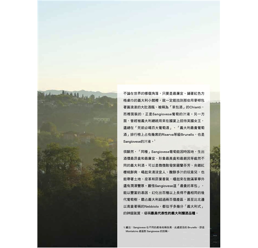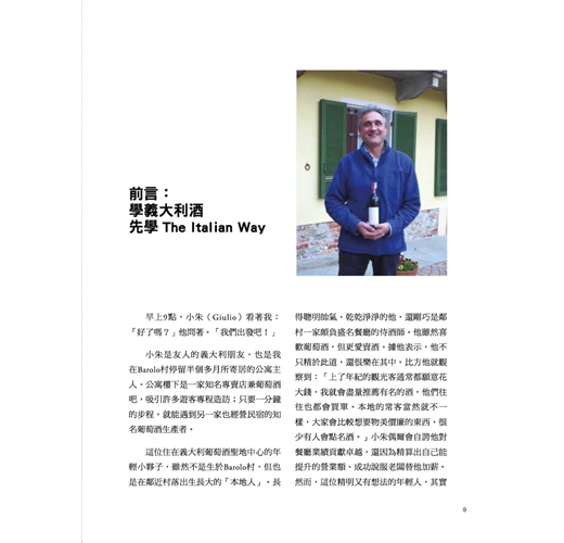 作者對義大利葡萄酒的愛是從南到北、自始至終。因此支撐本書的不僅是20多年的品飲經驗,現地採訪與經典爬梳的巧妙混種,最終發酵成一頁頁動人文字。