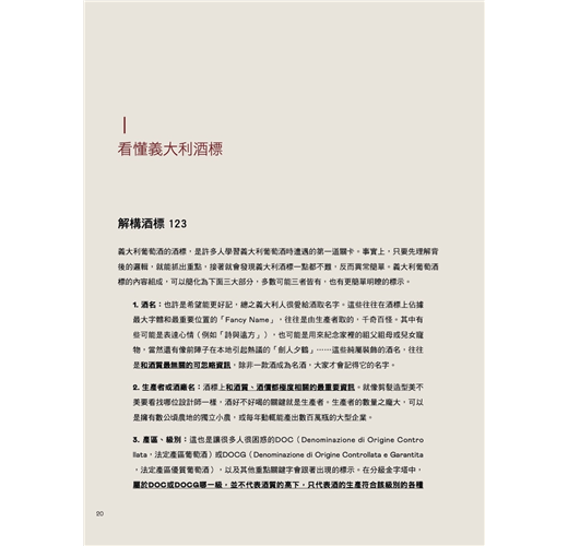 帶著陳匡民的《喝遍義大利》去賣場挑一瓶酒,就算味蕾不夠敏銳,也能在欣賞或收藏精緻的酒標中,獲得樂趣。這本書讓「初試者」擁有了基本的辨識力。