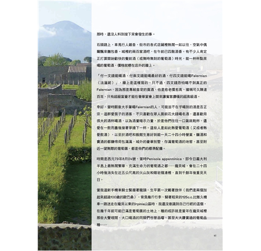 義大利是延伸入地中海的狹長半島國家,地形和氣候多變,有全世界最多的原生葡萄品種,光是龐貝所在的坎帕尼亞大區(Campania)就有超過一百種。一本講義大利特有葡萄品種的書,聽起來就很冷門,但即使是這樣的書,能談的也只是義大利釀酒葡萄中比較著名的少數,而且對一般消費者來說,很可能品種名稱和產區地名都同樣陌生。但是就如義大利有些絕美的景點,並不在所謂的四大名城或五大名城內,文藝復興三傑之外還有其他偉大藝術家,知名度有落差、受到的關注較少,但優秀特出毫不遜色。