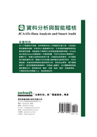 名人推薦:本書設計JCAATs AI稽核軟體標準課程章節,讓學習者能夠應用課程中所學,以循序漸進之方式,培養其大數據資料分析、文字探勘與機器學習等技術能力,讓其可以將這些技術使用於商業數據數據與稽核應用內,讓其具備職場所需的相關智能稽核的知識與應用能力。