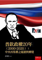 國內第一本系統性專門研究俄羅斯普欽時期政治經濟的專書。本書以普欽政權的中央再集權政策為主軸,從四個層面──政權體制和權力菁英、中央與地方、資源型經濟與能源戰略、公民社會管理,以制度性和非制度性運作分析普欽政權的「民主」道路。本書除了豐富的經驗資料之外,還有作者所發展的理論框架,可以導引對於俄羅斯不熟悉的讀者進入此一領域,對於關心時事的社會大眾都頗為合適。本書對於俄羅斯政治體制有深入的探討,對於俄羅斯研究、國際關係與比較政治相關課程,非常適合指定為教科書或參考書。