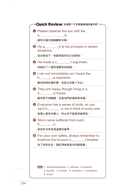 三大篇章最後皆附有練習題目,讀者在學習完單字後,可以用此來檢視自己的學習成效。如果成效不如預期,便可再翻回前頁多加閱讀並記憶,再回頭寫一次練習題進行確認即可。