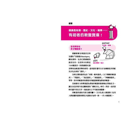 一邊認識原始印歐語和拉丁語、希臘語、日耳曼語等語言是經由什麼樣途徑被吸收成英語,一邊單純享受閱讀的樂趣,輕鬆地認識英文單字,把單調無趣的背單字過程變成快樂的事情,從中獲得立體的、高層次的教養,乃是本書的主要目的。