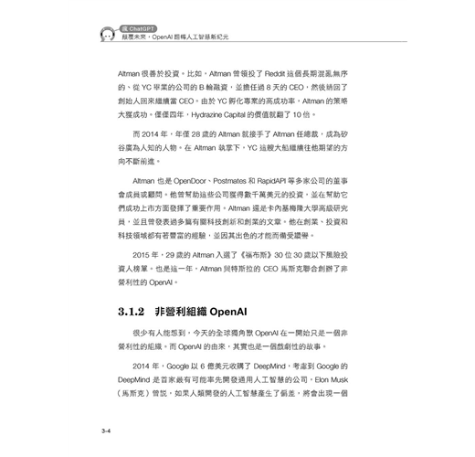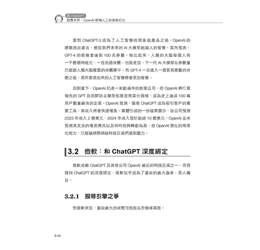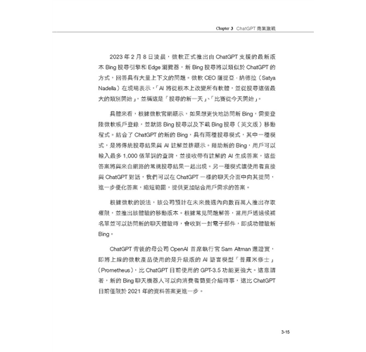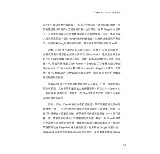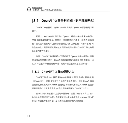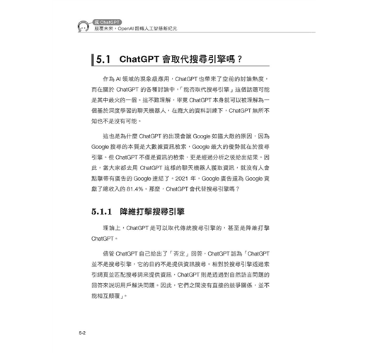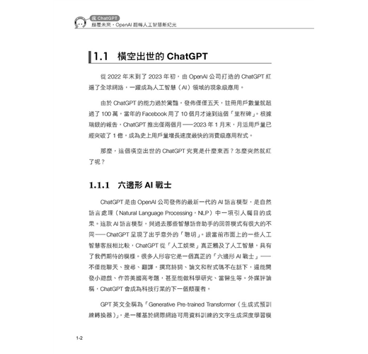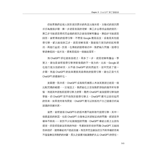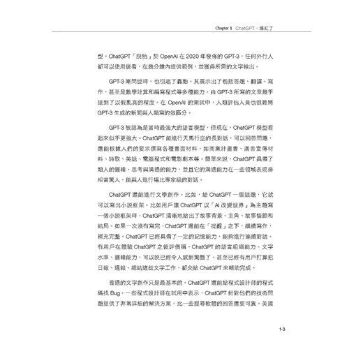 ChatGPT 的出現,預示著一個真正的人工智慧時代已經開啟,人機協作的時代正在加速到來。本書文字表達通俗易懂,易於理解,富於趣味,內容上深入淺出,循序漸進,能幫助讀者瞭解突然爆發的 ChatGPT,並在紛繁的資訊中梳理出認識人工智慧行業變革以及即將到來的通用人工智慧時代的線索。
