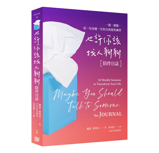 「不論是心理師、還是來諮商的人,我們尋求的答案其實都在自己身上,但因為個人經歷、錯誤敘事、文化制約,以及各式各樣的噪音,我們有時沒辦法找到心裡的答案——所以我們需要有人領路。」為了給讀者「領路」,作者以暢銷前作《也許你該找人聊聊》為藍本,設計出這本五十二週陪伴日誌——陪伴你與自己對話,希望能以一週一課題的方式啟發你的思考,協助你改變人生。