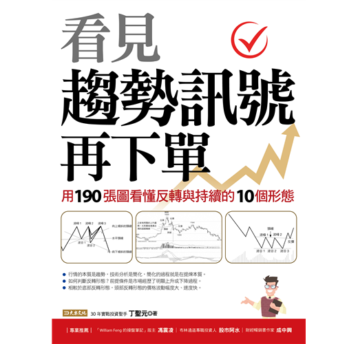 除了在《史上最強趨勢投資》帶領你了解趨勢階段和方向,他更在本書《看見趨勢訊號再下單》中,彙整多種標的實例,運用190張圖,教你分析令人煎熬的橫盤行情,辨別持續形態與反轉形態,抓準突破訊號和反轉徵兆,讓你能及時下單,累積高獲利,享受投資贏家的滋味!
