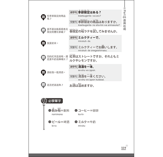語言最怕到用時總差那一句。全書超過 2500 個常用句,遊日需要能聽會說的通通有,互動零距離。另外,在緊急時,即使只用單字,也能表達或抓住關鍵字,聽懂對方意思。