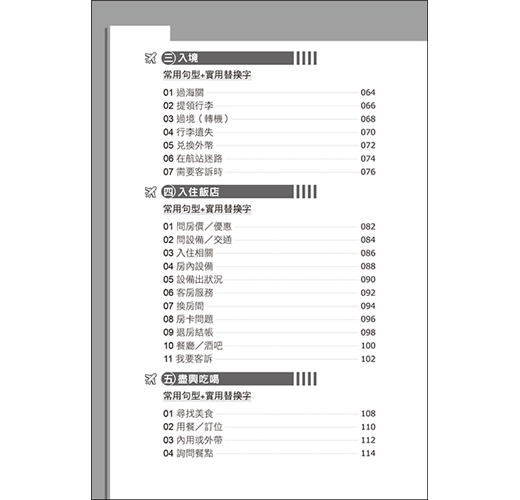 •旅遊情境主題式分類,快速隨翻即用,減少溝通的尬尷
