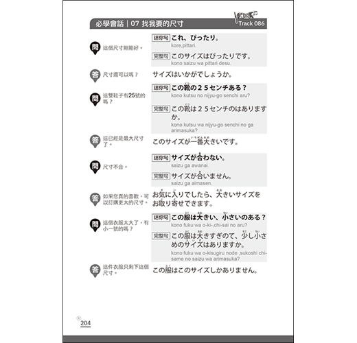 全書主題替換句、聽說常用句及單字,皆有中日語MP3語音檔供學習,最道地的日本語速、口氣,用聽的也能耳濡目染說好一口道地日語唷。
