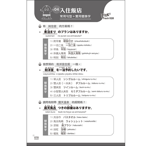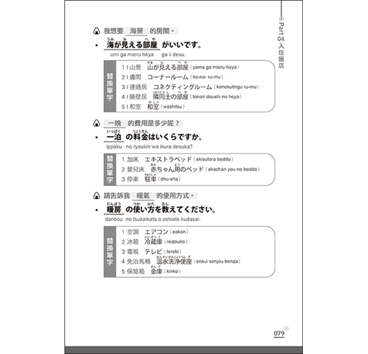 旅遊超好用的簡單溝通句型,搭配常用替換詞彙,清楚的標示羅馬拼音,隨時都能自信地跟著拼音開口說日語,表達想法很容易。