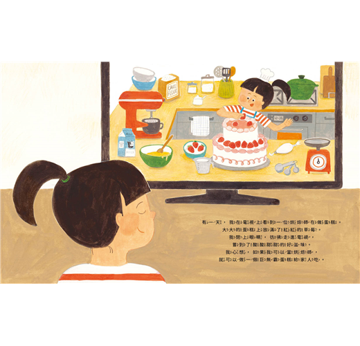 然而,當我在頒獎典禮見到這個依偎瑟縮在阿嬤身邊,黝黑又瘦小的女孩時,心中湧現的卻是更多的憐惜。我聽著她用微微顫抖的聲音,說著媽媽在她還襁褓時就離家的無奈;說著自己只能反覆讀爸爸寫來的信思念他的心情;也說著和阿嬤,姊姊相依為命的生活點滴……我竟怔然的不知該說什麼,只能和她打勾勾,答應陪她一起烘焙這個香香甜甜又充滿愛的故事。