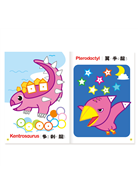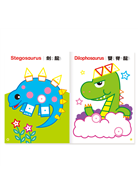 小手貼貼系列共有交通工具、動物、恐龍以及美味派對四種主題,依照圖案指示把正確形狀、顏色的貼紙貼上去,沒有上色的部份也可以自己上色塗鴉,讓圖案更完整!每本都有超過100張貼紙,還能學習中英文單詞喔!