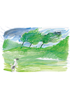樂手們在此稍作停頓,像是等待著指揮,也像在觀望舞臺中的表演,接著陷入演奏急促又強烈的旋律中。樂聲變成紊亂的色鉛筆筆觸,如旋風漸漸包圍了整個樂團。狂風吹進舞臺中,孩子們的所在之處終於下起夏日雷陣雨。