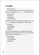 測驗文章段落理解能力,將一般讀者常混淆的文法觀念、常見詞彙用法以及其他考點一一併入,根據短文內容和形式,以克漏字方式,讓讀者選出一般常使用的慣用語。能藉由測驗擴充字彙量及熟悉正確的句型使用,亦更能奠定文法概念。