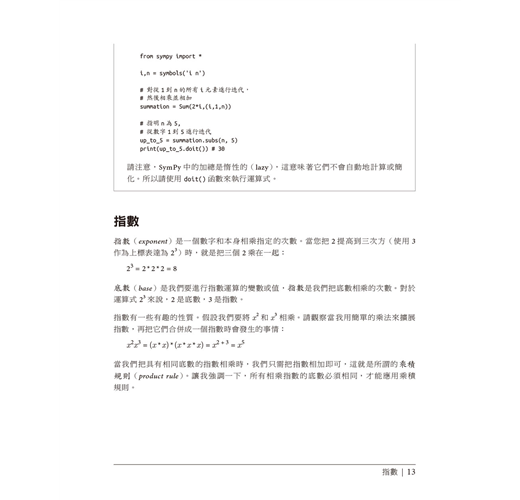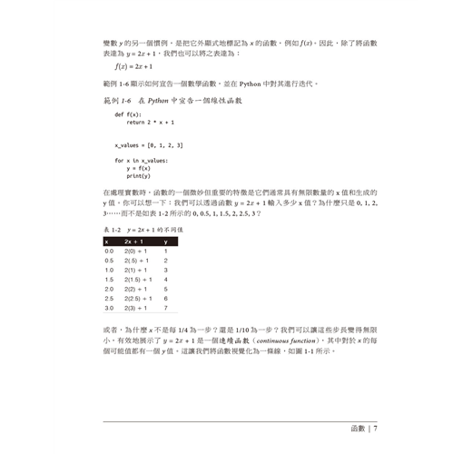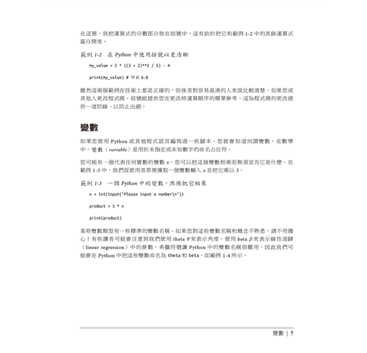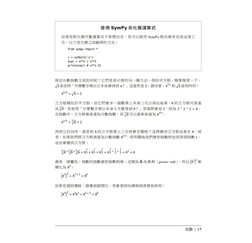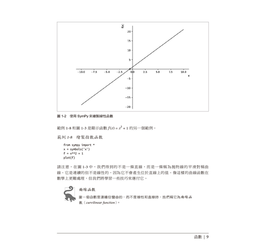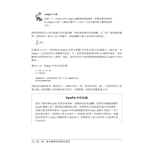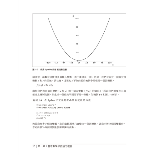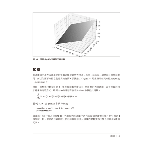 ‧使用Python程式碼和SymPy、NumPy和scikit-learn等程式庫來探索基本的數學概念,例如微積分、線性代數、統計和機器學習