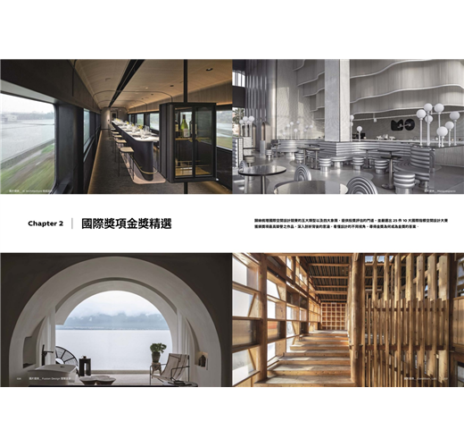 Chapter 2「國際獎項金獎精選」歸納梳理國際空間設計競賽的五大類型以及四大象限,提供投獎評估的門道,並嚴選出25 件10 大國際指標空間設計大賽獲頒獎項最高榮譽之作品,深入剖析背後的意涵,看懂設計的不同視角,尋得金獎為何成為金獎的答案。
