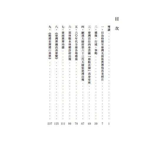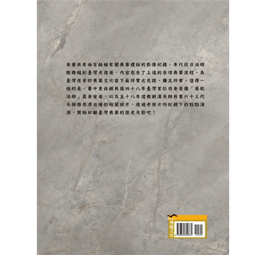 值得一提的是,書中更收錄了民國四十八年臺灣首位肉身菩薩「慈航法師」真身安座,以及五十八年道教嗣漢天師府第六十三代天師張恩溥出殯的相關照片,透過老照片所紀錄下的點點滴滴,開始回顧臺灣喪葬的歷史光影吧!